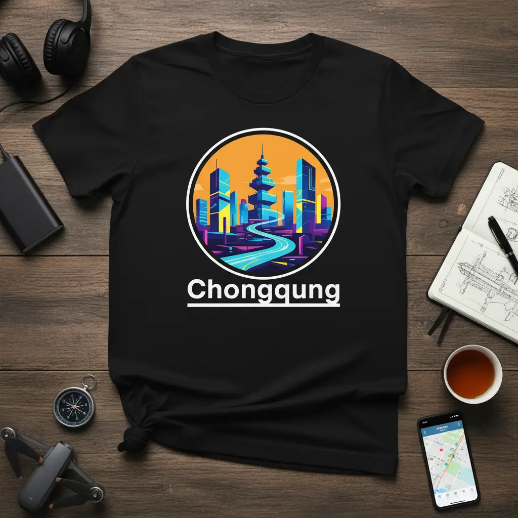 Pick from Black, Navy, Royal, Dark Heather, Red, and White to match your mood and wardrobe staples. Each colorway keeps the Chongqing design clear and photo-ready for everyday wear.