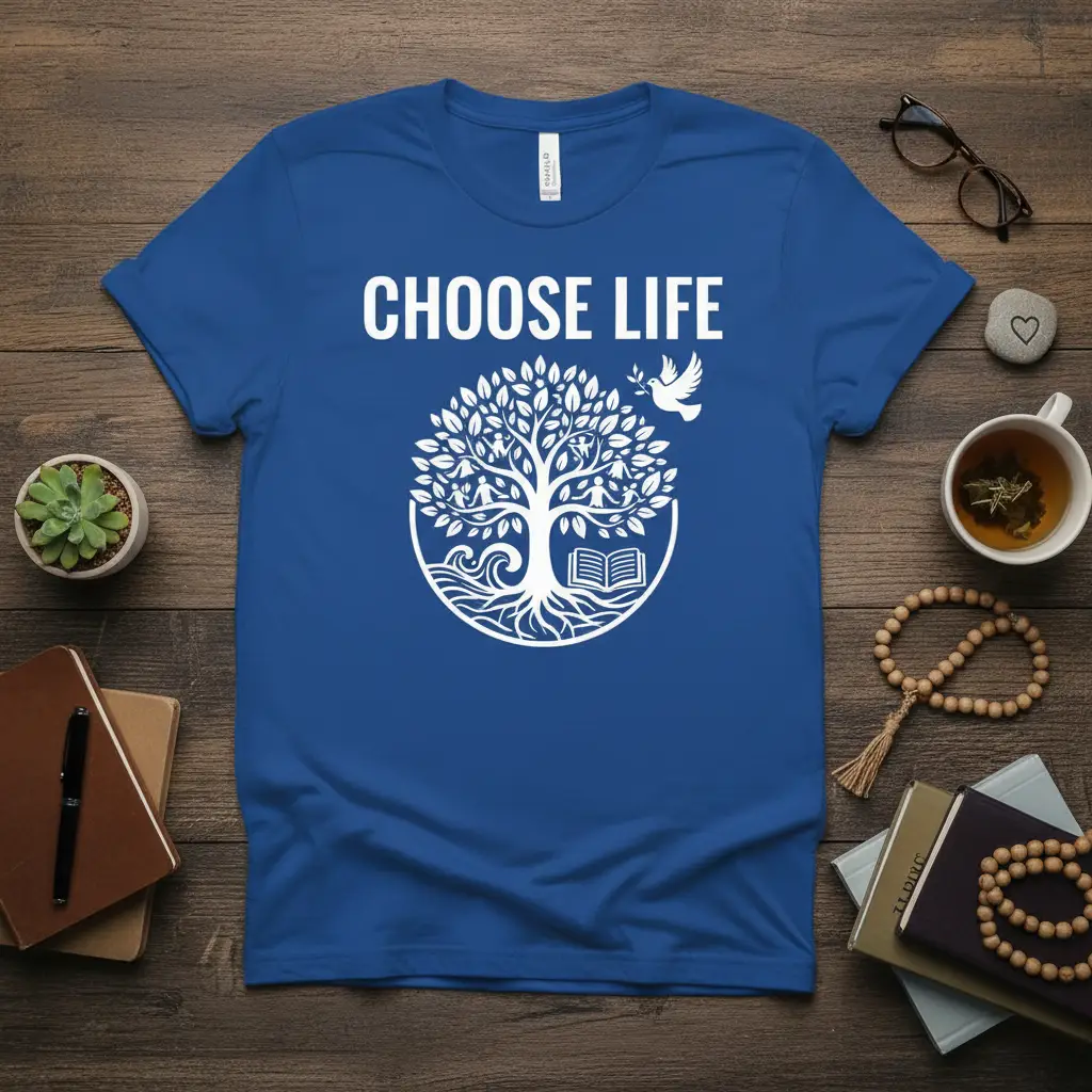 Looking for a meaningful gift? This “CHOOSE LIFE” t-shirt is an excellent choice for friends, family, or anyone who appreciates inspirational messages and symbolic designs. It’s ideal for birthdays, holidays, or as a special surprise to uplift someone’s spirits. Presenting this tee is a way to share a message of hope and positivity.