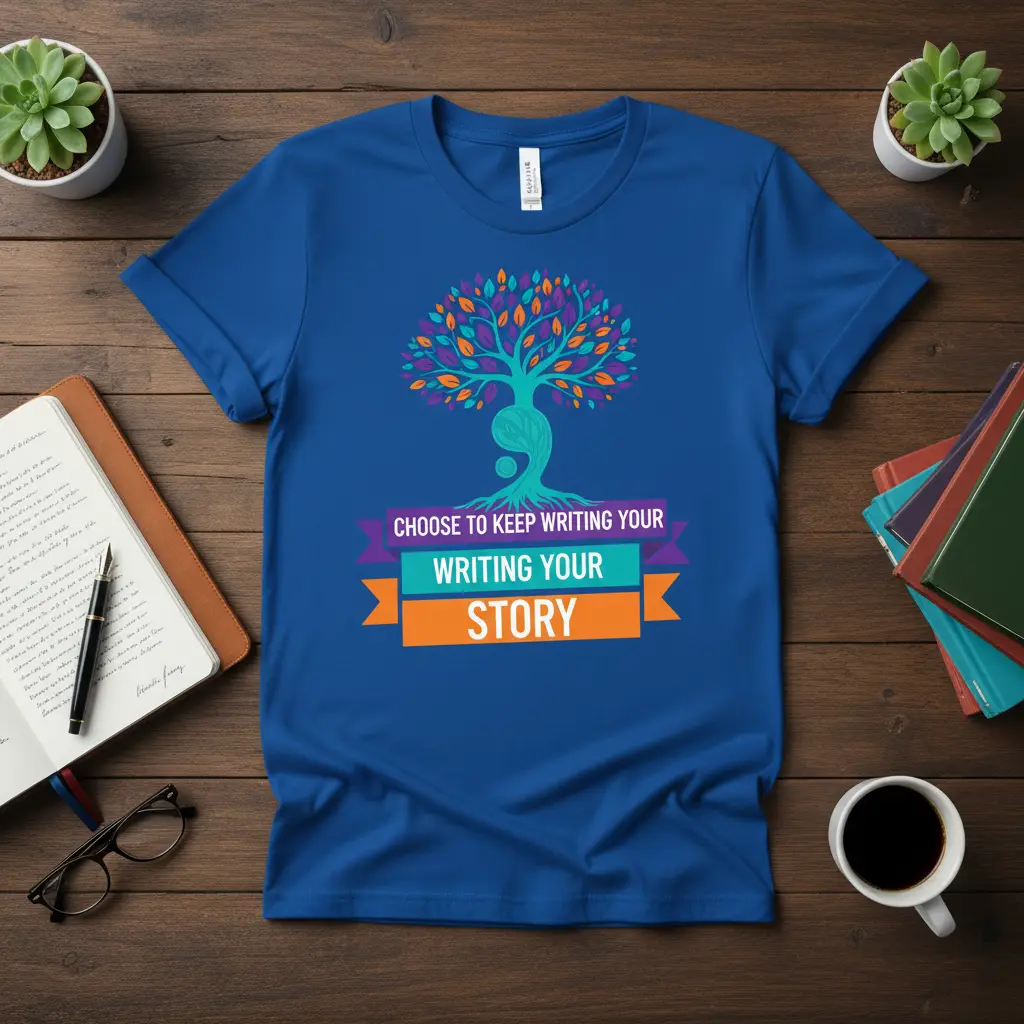 CHOOSE TO KEEP WRITING YOUR WRITING YOUR STORY, an empowering message for every creator, is beautifully captured on this premium t-shirt. This design serves as a constant reminder to embrace your narrative, persist through challenges, and celebrate the journey of storytelling. It’s more than just apparel; it’s a declaration of dedication to your craft and a beacon of inspiration for writers, authors, and anyone passionate about bringing their unique tales to life. Wear your passion and let the world know that your story is worth telling.