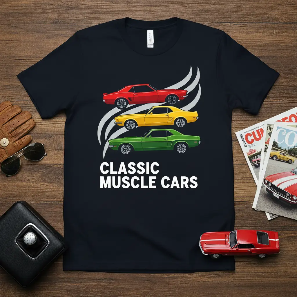 Dive into the rich history of American automotive engineering with this classic muscle car t-shirt. The design pays homage to the legendary vehicles that defined an era, bringing their iconic silhouettes to life. From the sleek lines to the powerful stance, every detail is captured to evoke the excitement and nostalgia associated with these remarkable machines. It’s a wearable tribute to the craftsmanship and spirit that made these cars automotive legends.