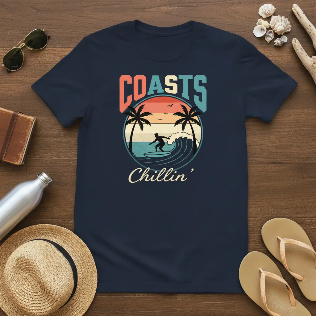 For the true ocean lover, this “Coasts Chillin'” t-shirt is a must-have. It speaks to the soul of surfers and anyone captivated by the power and beauty of the sea. The design captures the essence of the surf life – the dedication, the thrill, and the pure joy of riding the waves. It’s a great way to show your passion for all things aquatic and coastal, making it a perfect gift for friends and family who share this affinity.