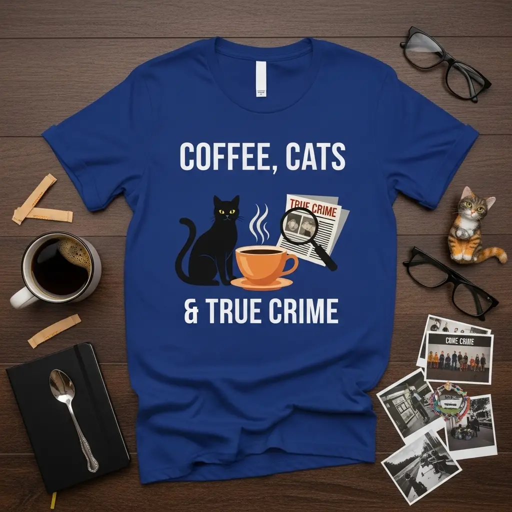 Coffee, Cats & True Crime: The Ultimate Trio T-Shirt