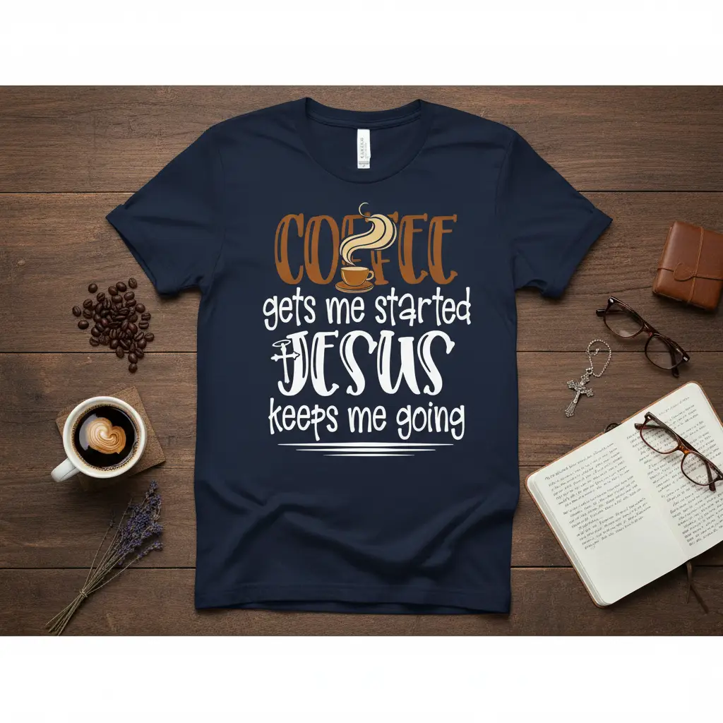 Coffee Gets Me Started Jesus Keeps Me Going T-Shirt Design