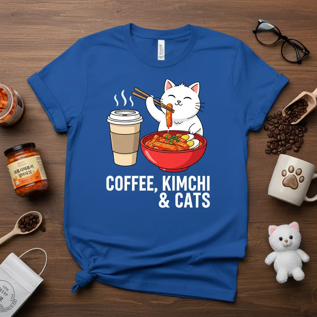 The Ultimate COFFEE, KIMCHI & CATS T-Shirt for True Fans