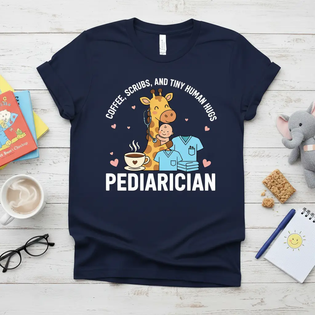This “Coffee, Scrubs, and Tiny Human Hugs Pediatrician” T-Shirt is the perfect way to show appreciation for the amazing work pediatricians do. Featuring a charming giraffe, baby, and essential medical gear, it’s a comfortable and stylish gift that celebrates the daily joys of caring for little ones. It’s a thoughtful present for any pediatrician who juggles coffee, scrubs, and those precious tiny human hugs.