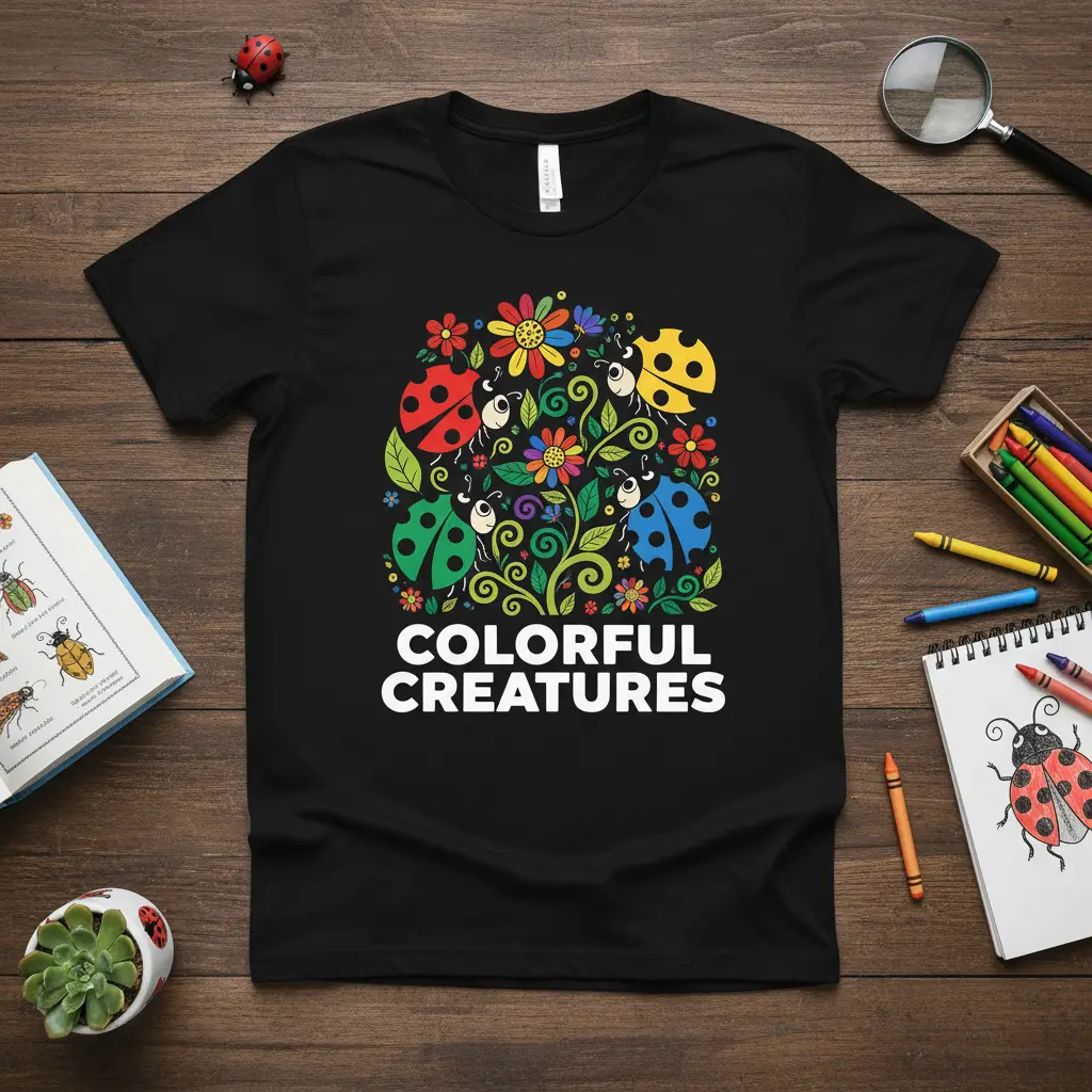 Colorful Creatures Ladybug & Flower T-Shirt Nature Lover Gift