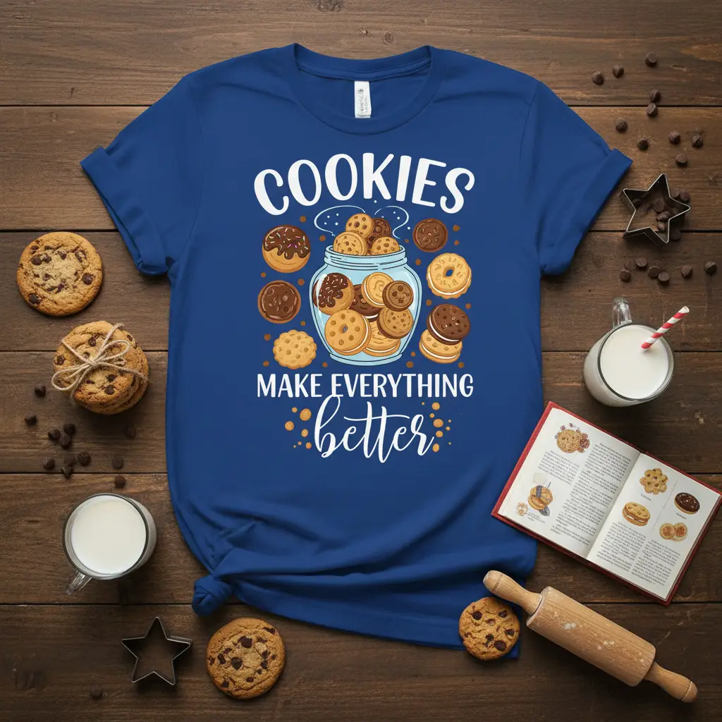 Searching for a thoughtful gift for a friend, family member, or colleague who adores cookies? Look no further. This “Cookies Make Everything Better” t-shirt is an ideal present for birthdays, holidays, or just because. It’s a unique and wearable gift that combines style with a universally loved sentiment. Imagine the smile it will bring to their face as they unwrap this sweet surprise, a perfect addition to their collection of baking-themed items.