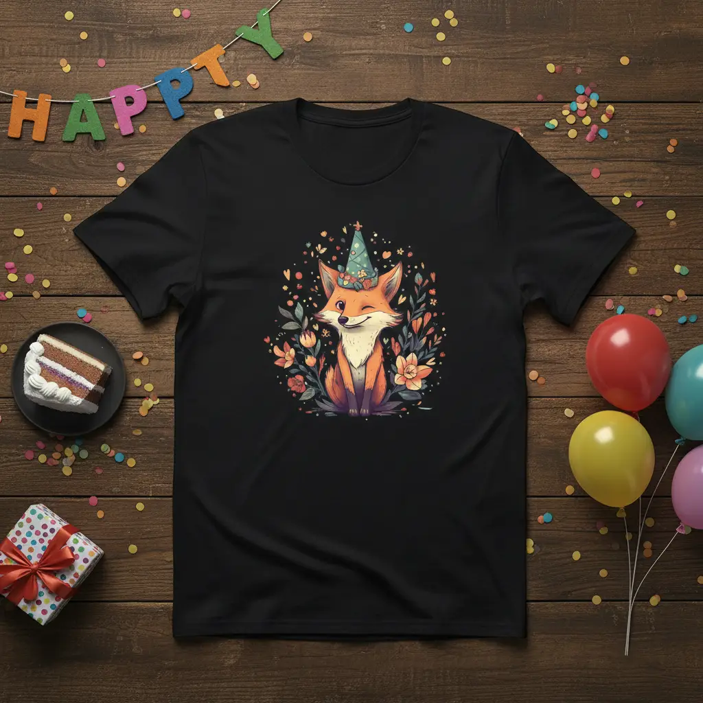 Cute Fox Party Hat designs are perfect for adding a touch of whimsical charm to any birthday celebration or for anyone who simply adores adorable woodland creatures. This eye-catching graphic tee features a delightful illustration of a fox sporting a festive party hat and a playful wink, surrounded by a vibrant array of flowers and confetti. It’s more than just a t-shirt; it’s a wearable piece of art that brings smiles and spreads cheer. Whether you’re looking for a unique birthday gift or a fun addition to your casual wardrobe, this design captures the essence of playful celebration.