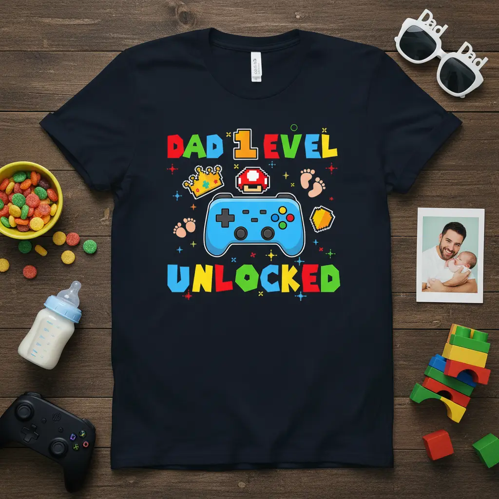 Dad 1 Level Unlocked: The Ultimate Gamer Dad Tee
