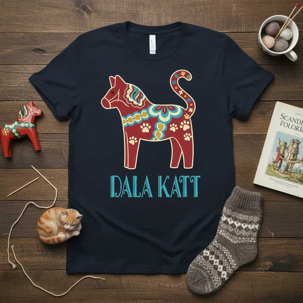 Don’t miss the opportunity to own this exquisite Dala Katt t-shirt, a beautiful fusion of traditional Swedish folk art and modern wearable design. Its intricate details and symbolic imagery make it a truly special garment. Explore the collection and find the perfect Dala Katt piece to add a touch of cultural elegance and artistic flair to your wardrobe. Order yours today and celebrate the enduring charm of the Dala horse!
