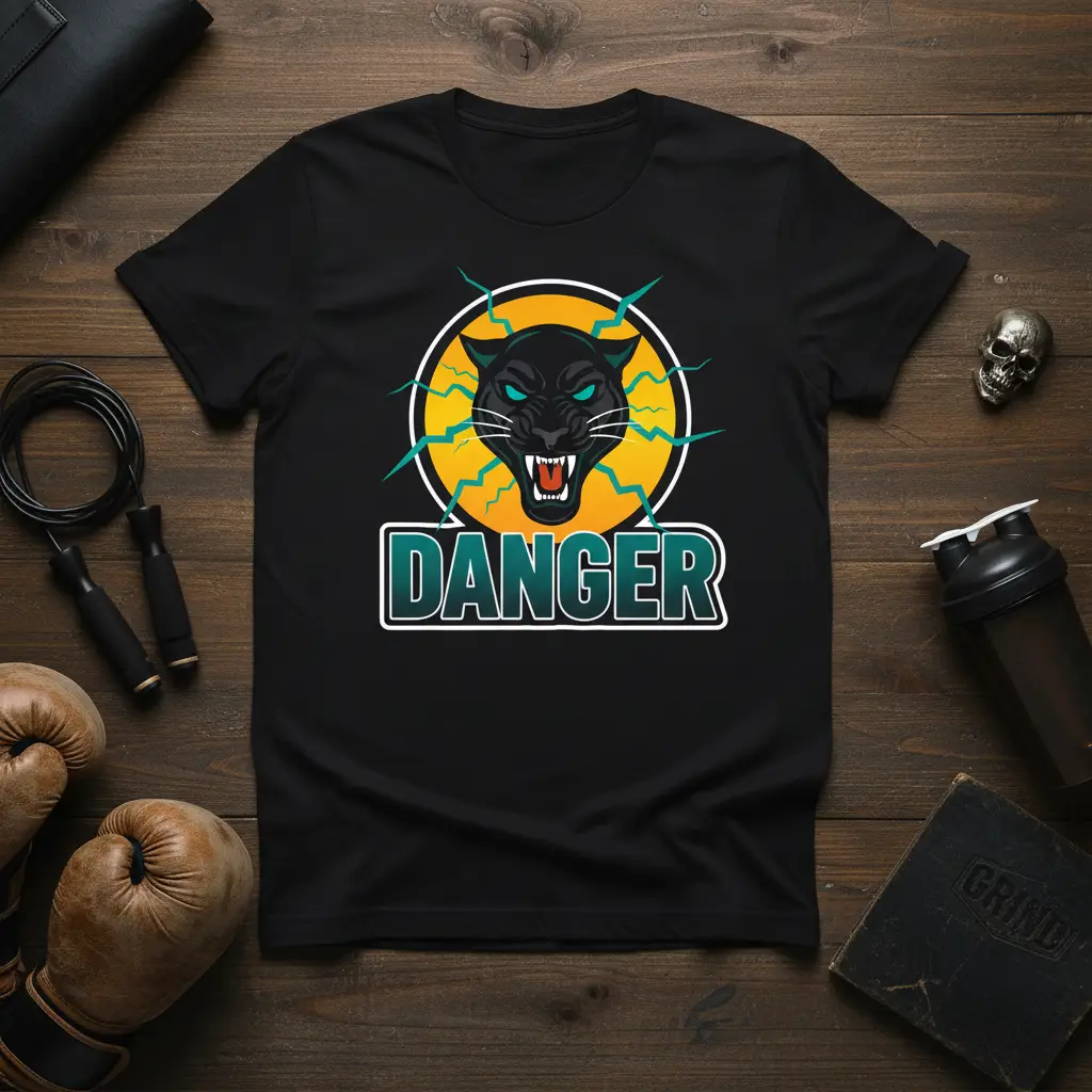 Embrace your inner power with this striking Danger Black Panther T-Shirt. The design features a fierce black panther graphic surrounded by electric accents, perfect for anyone who loves bold, edgy streetwear. Made from comfortable, high-quality fabric, this tee is built to last and make a powerful statement.