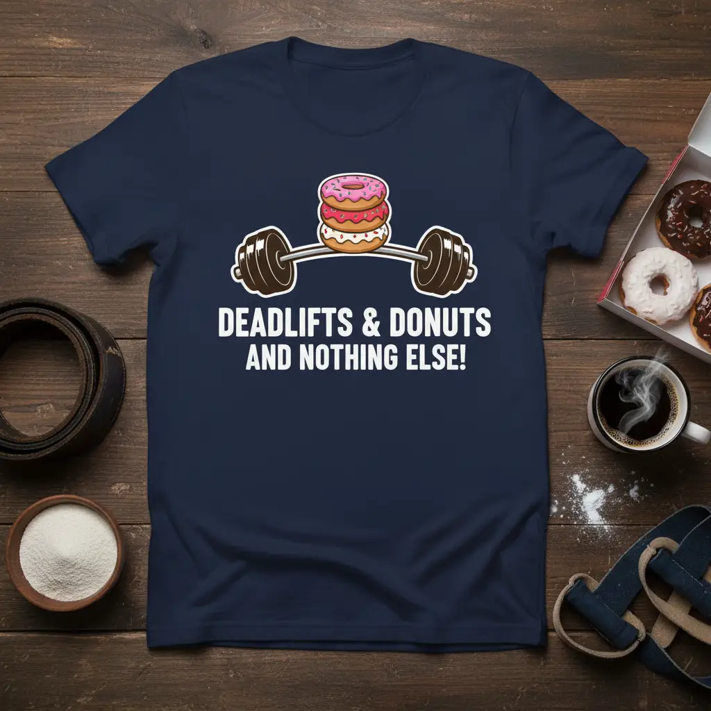 The phrase “DEADLIFTS & DONUTS AND NOTHING ELSE!” is a humorous yet honest representation of many fitness lovers’ philosophies. It speaks to the dedication required for heavy lifting and the simple joy that a good donut can bring. This design is a conversation starter and a clear indicator of your priorities – crushing your goals and enjoying life’s pleasures.