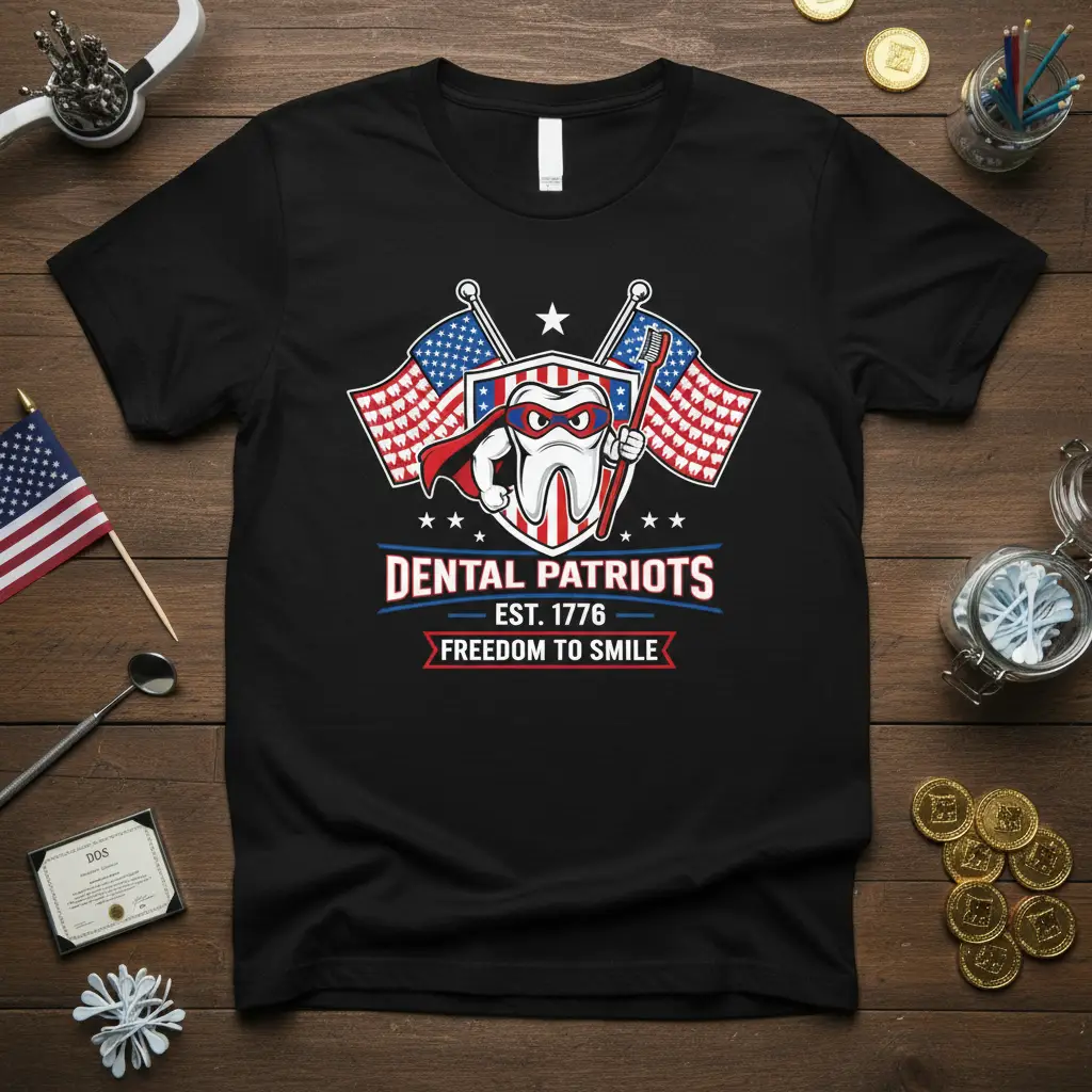 The “DENTAL PATRIOTS EST. 1776 FREEDOM TO SMILE” t-shirt is an exceptional way to celebrate your role in the dental field and your love for the country. Its unique design and powerful message make it a standout piece. Don’t miss the chance to own this fantastic t-shirt, perfect for yourself or as a memorable gift for a fellow dental professional. Order yours today and wear your pride!