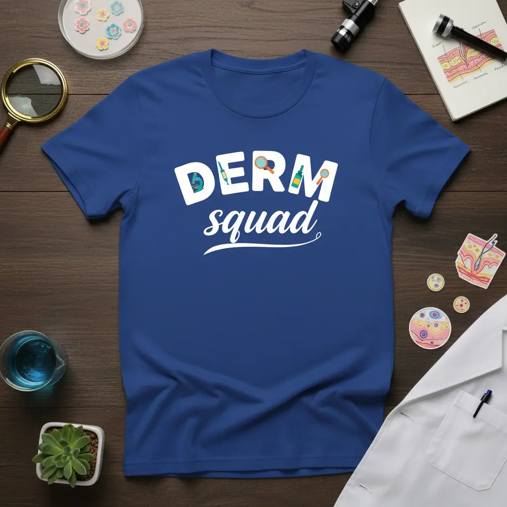 Wearing this shirt is a way to express your dedication to the field of dermatology and to connect with like-minded individuals. It’s suitable for various settings, from casual outings to informal team gatherings, allowing you to represent your profession with pride and a touch of personality. The quality of the print ensures longevity, so your DERM squad message remains clear and vibrant wash after wash.