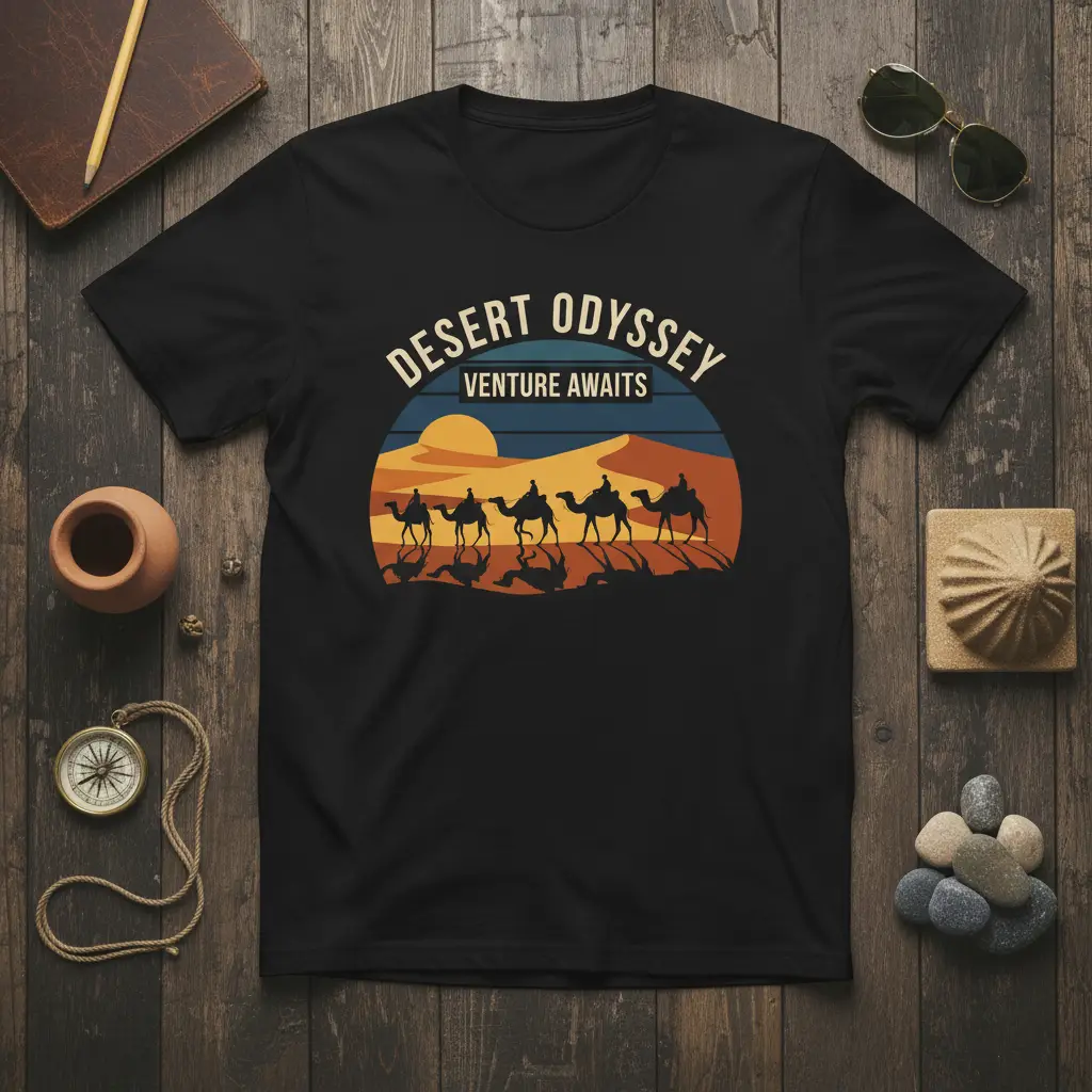 The vintage-inspired aesthetic adds a touch of nostalgia, reminiscent of classic travel posters and adventurous tales. This t-shirt is ideal for anyone who dreams of embarking on their own desert odyssey, making it a thoughtful gift for birthdays, holidays, or just because.