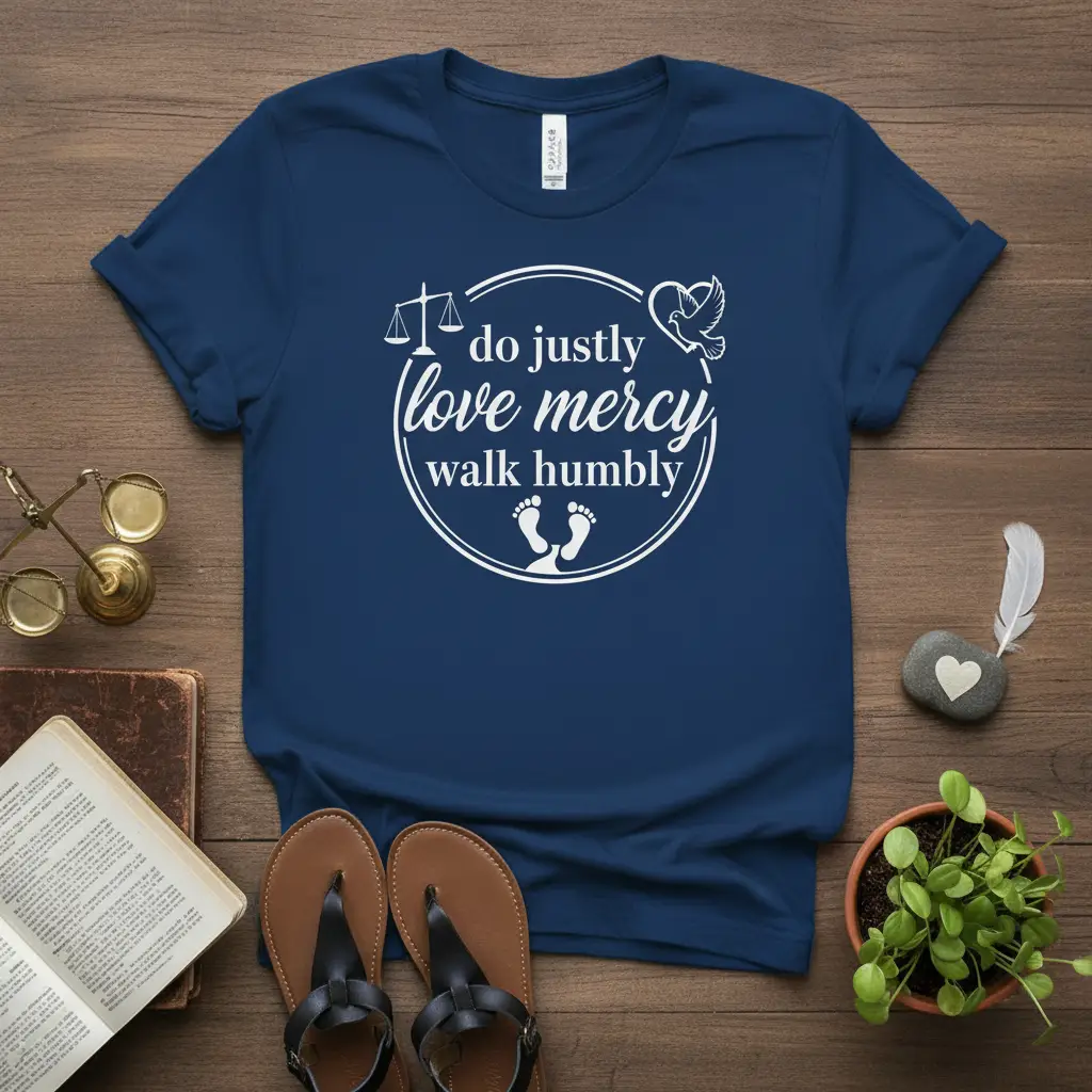 Pick from Black, Navy, Royal, Dark Heather, Red, and White to match your mood and wardrobe staples. Each colorway keeps the do justly love mercy walk humbly design clear and photo-ready for everyday wear.