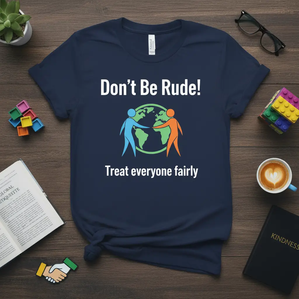 This t-shirt is more than just apparel; it’s a wearable affirmation of a commitment to a better world. By choosing to wear “Don’t Be Rude! Treat everyone fairly,” you become an ambassador for respect and understanding. It’s a simple yet profound way to contribute to a more positive global dialogue. Don’t miss out on the chance to make a statement and inspire change – add this essential piece to your collection or gift it to someone special today!