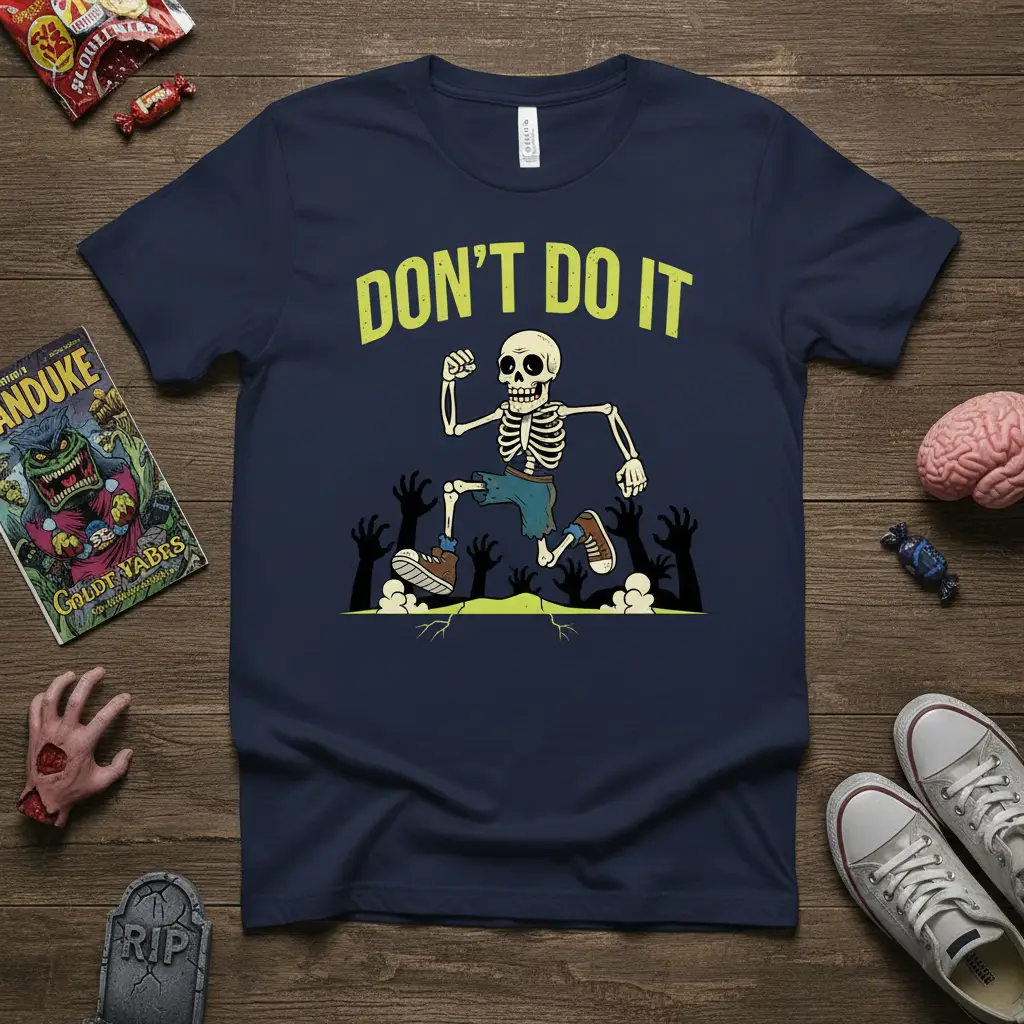 This “Don’t Do It” Skeleton Running T-Shirt is the perfect blend of humor and Halloween spirit. Featuring a fleeing skeleton and spooky vibes, it’s an ideal gift for anyone who loves a good scare or a laugh. Enjoy premium comfort and a unique design that stands out this season.