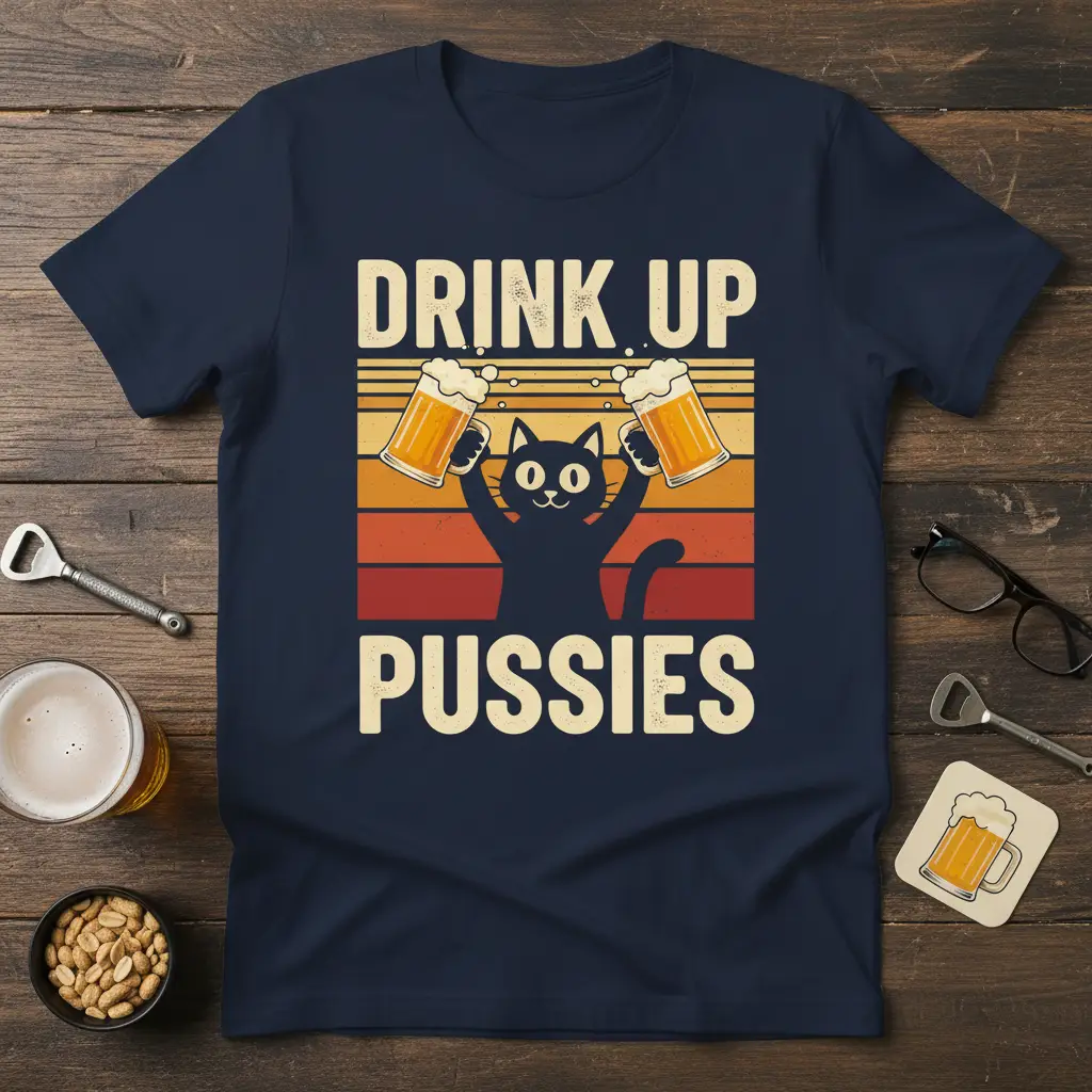 Drink Up Pussies Cat Beer T-Shirt Funny Party Gift