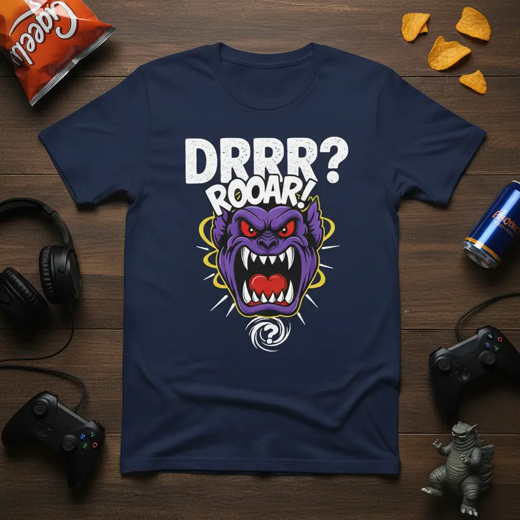 DRRR? ROOAR! This striking t-shirt is designed for those who understand the primal urge to conquer virtual worlds and express their inner beast. Featuring bold typography and a vividly illustrated purple monster, this tee is more than just apparel; it’s a statement piece for gamers, monster enthusiasts, and anyone with a quirky sense of humor. The design captures a moment of intense, perhaps confused, excitement, making it a conversation starter for any casual occasion. It embodies a spirit of fun and a love for all things monstrous and gaming-related.