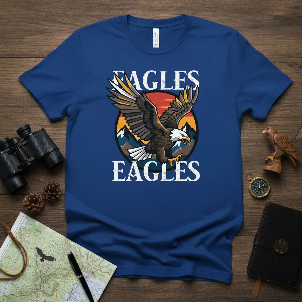 Celebrate the majestic beauty of eagles with this striking “Eagles Eagles” t-shirt. It’s the perfect way for bird watching enthusiasts and nature lovers to showcase their passion. Made for comfort and durability, this tee is an ideal gift for anyone who appreciates wildlife and the great outdoors.