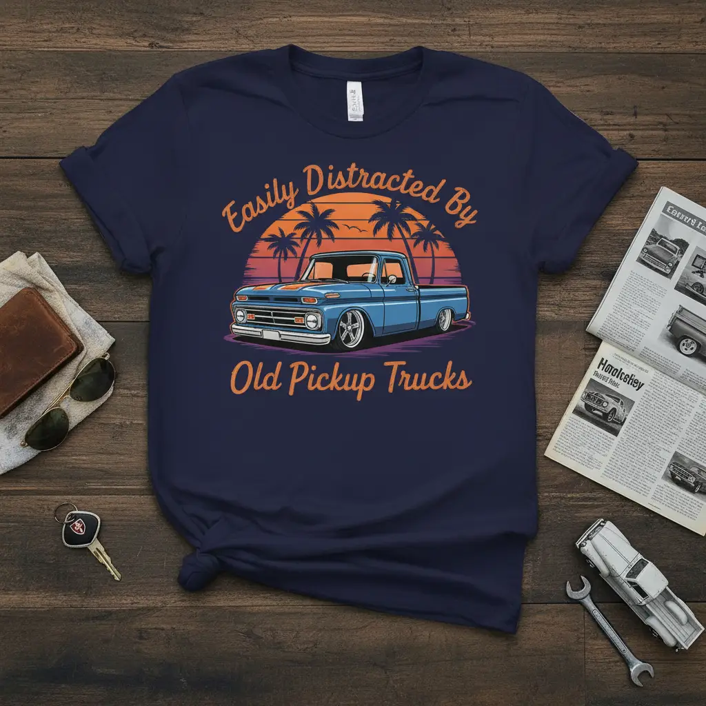 If your heart skips a beat at the sight of a classic Ford F-Series, a vintage Chevrolet C10, or any other iconic old pickup truck, this shirt is made for you. It serves as a conversation starter at car shows, meetups, or even just during your daily errands. Owning a piece of automotive history is one thing, but wearing your passion is another level of appreciation. This Easily Distracted By Old Pickup Trucks design allows you to carry that appreciation with you wherever you go.