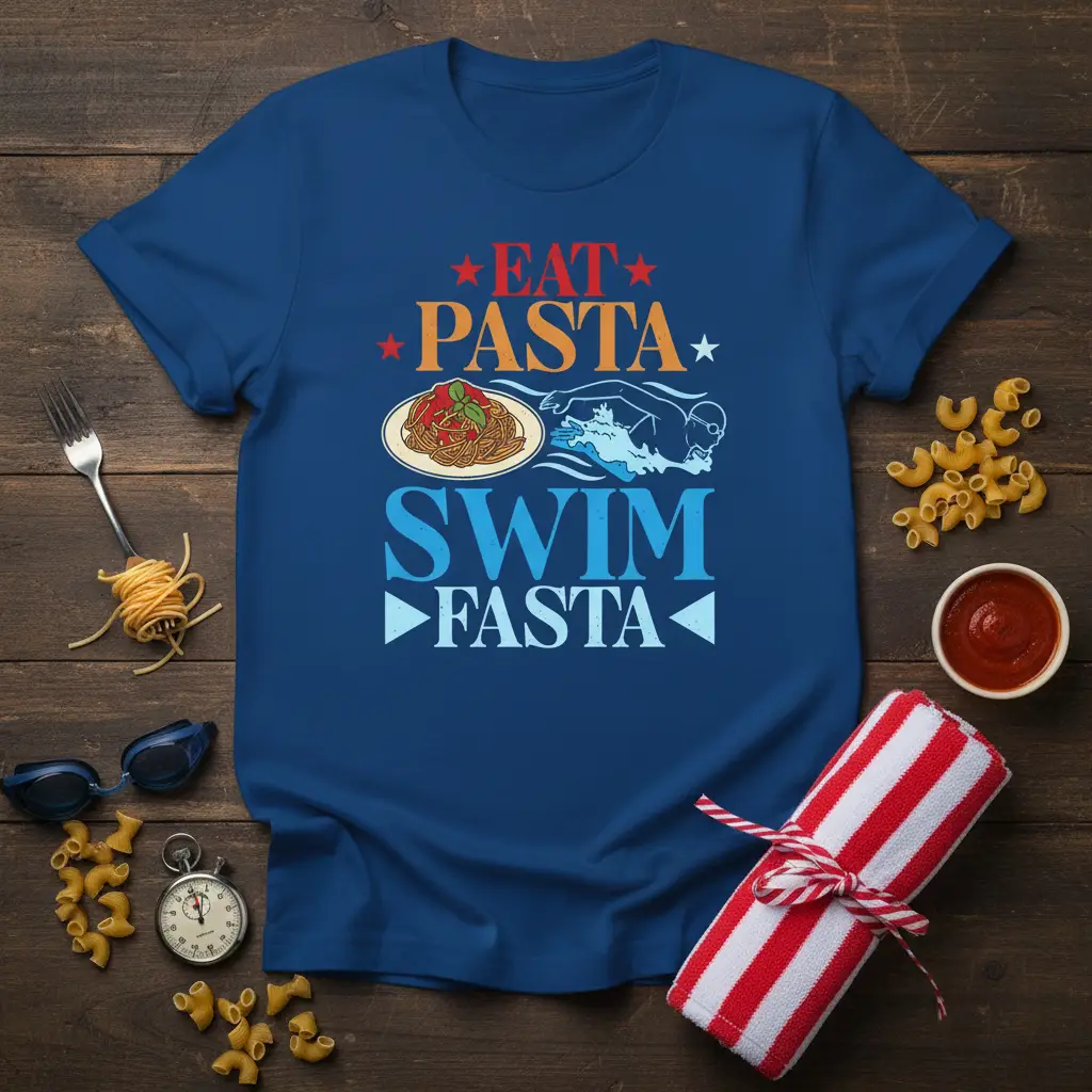 The “Eat Pasta Swim Fasta” tee is crafted for comfort and durability, making it ideal for post-swim relaxation or everyday wear. Its vibrant design serves as a constant motivator, reminding you to embrace both your culinary passions and your athletic pursuits. It’s the perfect way to express your identity as a swimmer who knows the importance of good food for great performance.
