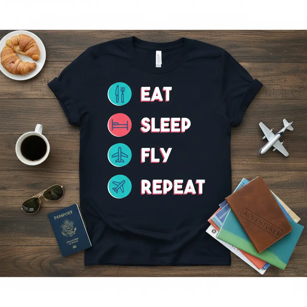 The Ultimate Eat Sleep Fly Repeat T-Shirt for Travelers