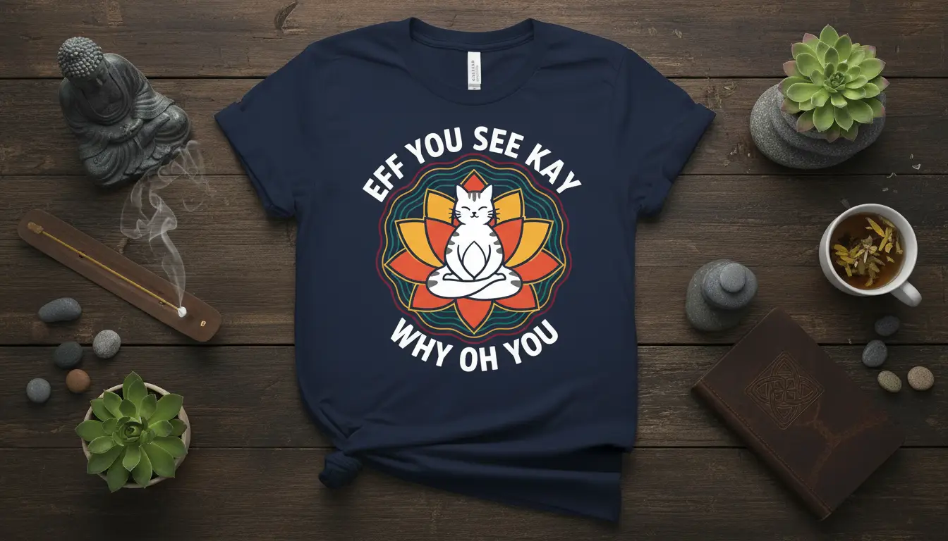 Eff You See Kay Why Oh You this hilarious t-shirt is designed to bring a smile to your face and a chuckle to anyone who sees it. Featuring a serene cat in a meditative yoga pose, surrounded by a vibrant lotus flower, this tee perfectly captures a mood of playful defiance. It’s the ideal way to express your sense of humor and your love for felines, making it a standout piece in any casual wardrobe. This shirt is more than just apparel; it’s a statement of lighthearted rebellion and a celebration of the quirky joys in life.