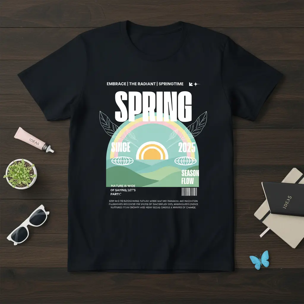 This striking t-shirt is designed to embody the spirit of spring, featuring the impactful slogan “EMBRACE | THE RADIANT | SPRINGTIME” alongside the prominent word “SPRING.” The year “2025” is highlighted, signifying a fresh start and a forward-looking perspective on the season’s arrival. The phrase “SEASON FLOW” is also incorporated, suggesting the natural progression and beauty of nature’s cycles. This tee is a wearable declaration of your love for springtime and all the positive vibes it brings.