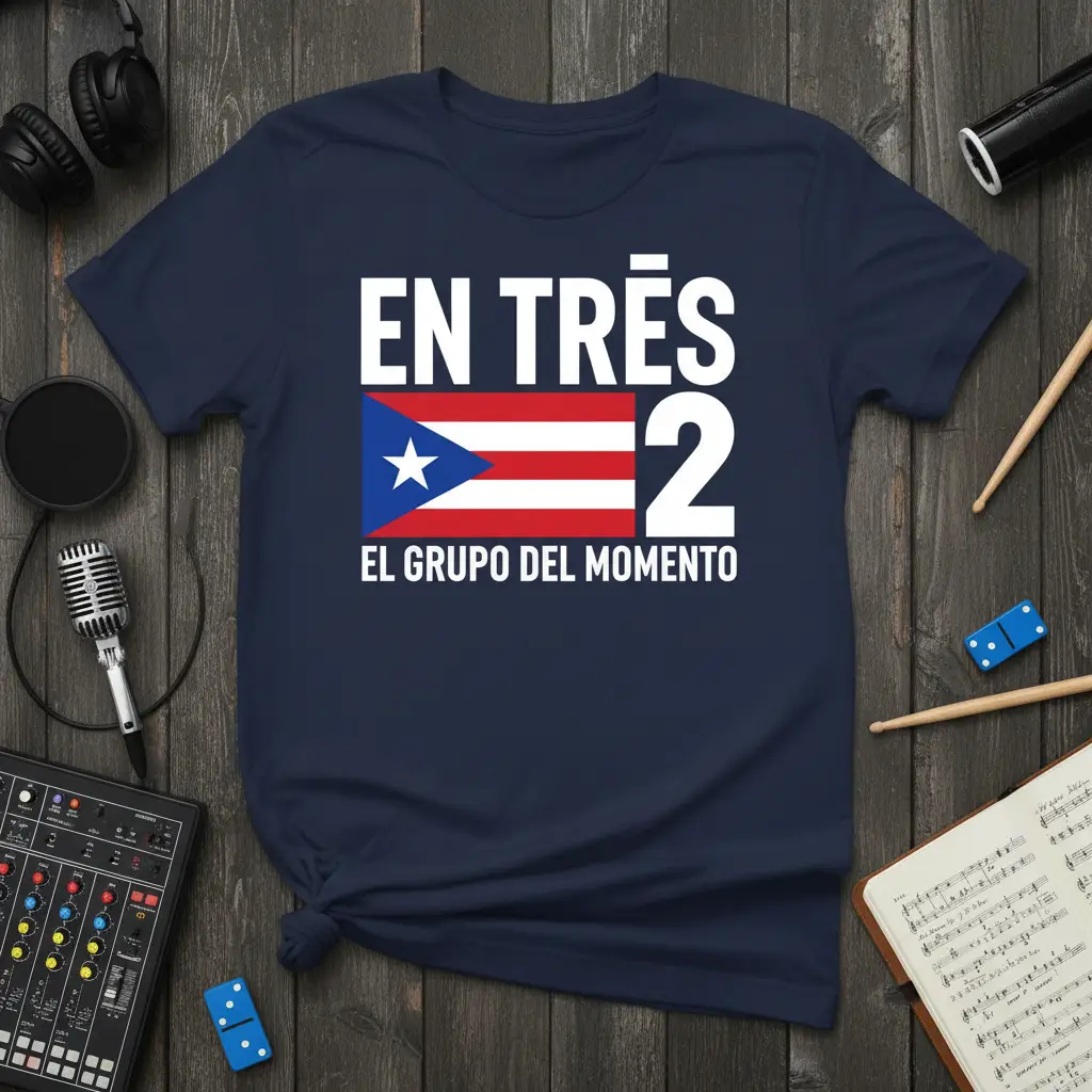 EN TRÉS 2 EL GRUPO DEL MOMENTO boldly declares your allegiance to the hottest group on the scene, featuring the iconic Puerto Rico flag. This t-shirt is more than just apparel; it’s a statement of cultural pride and musical passion. Crafted for comfort and designed to stand out, it’s the perfect way for any fan to showcase their love for boricua culture and their favorite artists. Wear it proudly to concerts, festivals, or simply while enjoying your favorite tunes.