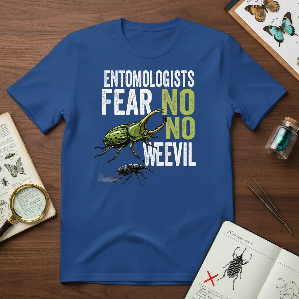 Pick from Black, Navy, Royal, Dark Heather, Red, and White to match your mood and wardrobe staples. Each colorway keeps the ENTOMOLOGISTS FEAR NO NO WEEVIL design clear and photo-ready for everyday wear.
