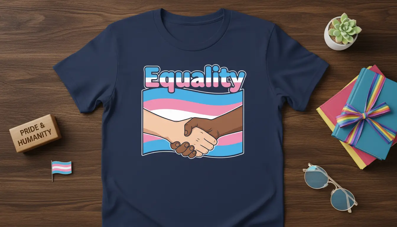 The visual elements of the design are carefully chosen to convey a strong, positive message. The bold lettering of “Equality” stands out, while the transgender flag colors provide a clear symbol of identity and pride. The handshake adds a layer of human connection and solidarity, making the message even more impactful.