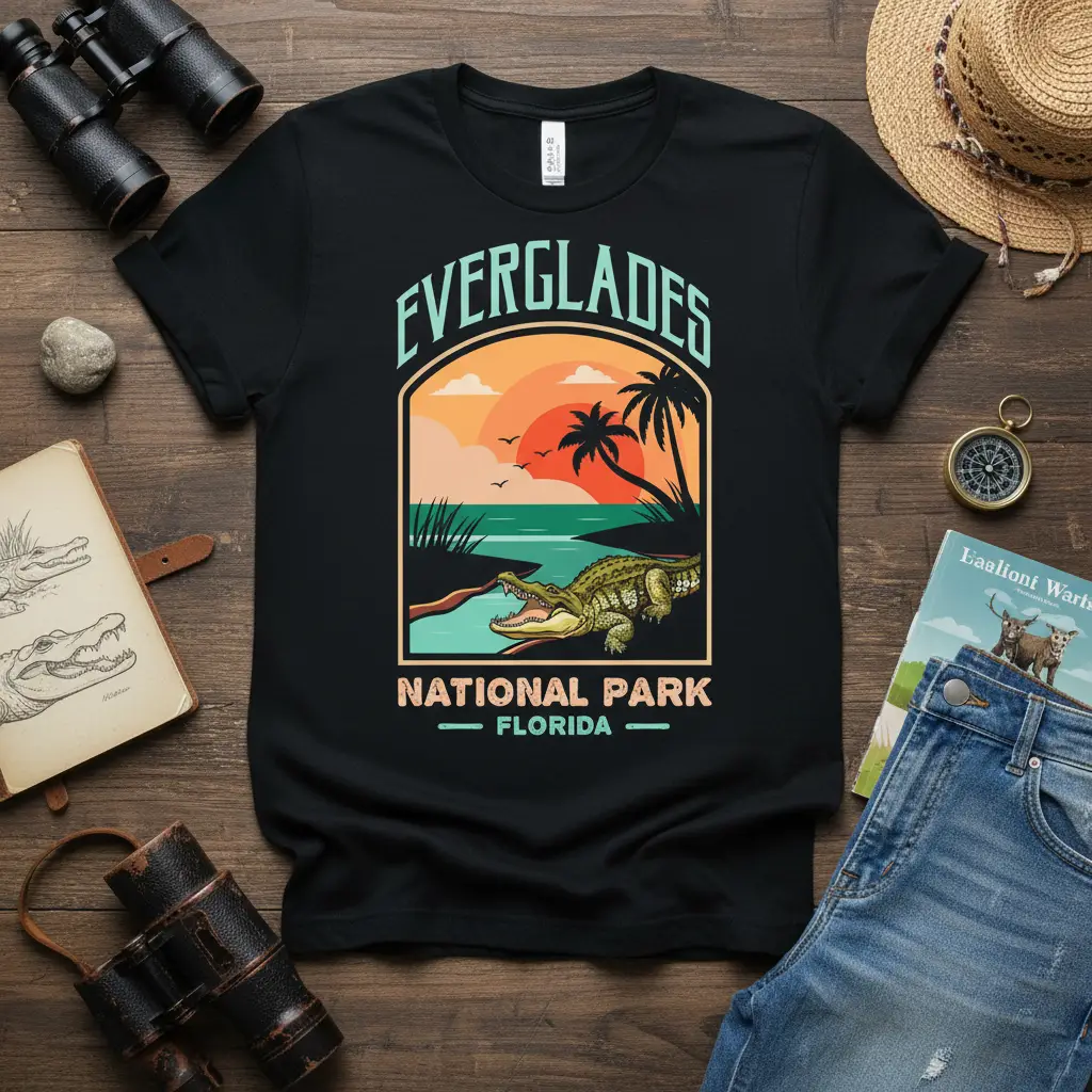 Capture the spirit of your adventures with this iconic Everglades National Park Florida t-shirt. Featuring a vibrant sunset scene and a majestic alligator, it’s the perfect way to commemorate your trip or gift to a fellow nature enthusiast. Made for comfort and durability, this tee is ready for any exploration.