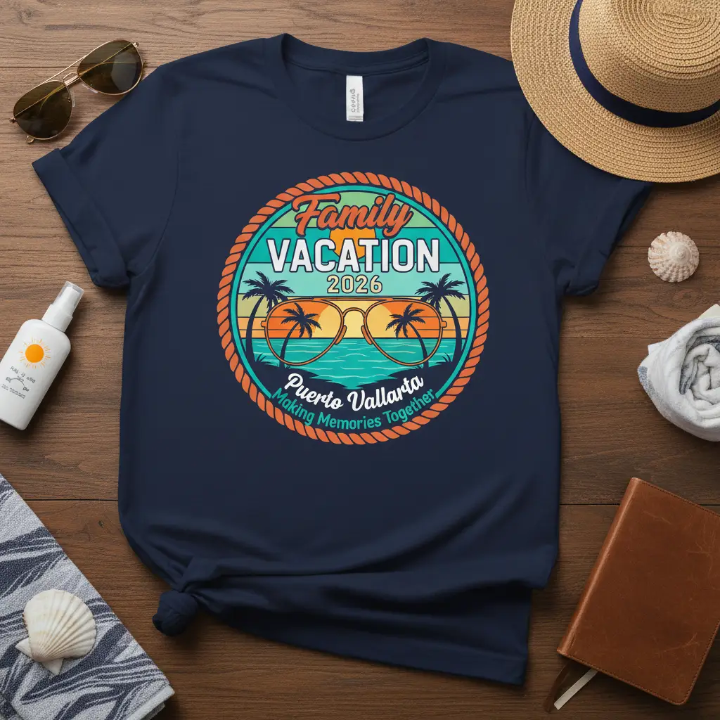 Family VACATION 2026 Puerto Vallarta Making Memories Together with this vibrant and stylish t-shirt designed to capture the spirit of your unforgettable getaway. This tee is more than just apparel; it’s a wearable memento of the special moments and cherished experiences shared with loved ones. The eye-catching design evokes the warmth of the sun, the beauty of the ocean, and the joy of togetherness. It’s perfect for anyone looking to commemorate a significant family trip to Puerto Vallarta or simply celebrate the importance of making memories together.