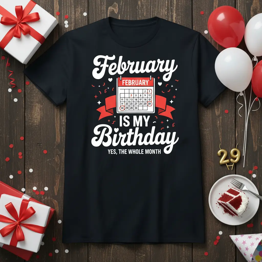 The design is crafted to resonate with anyone who feels their birthday month is a special time deserving of extended recognition. It’s perfect for those who love to extend the party and share their birth month joy with everyone around them. This shirt is a fantastic way to showcase your February pride and your love for a prolonged birthday celebration.