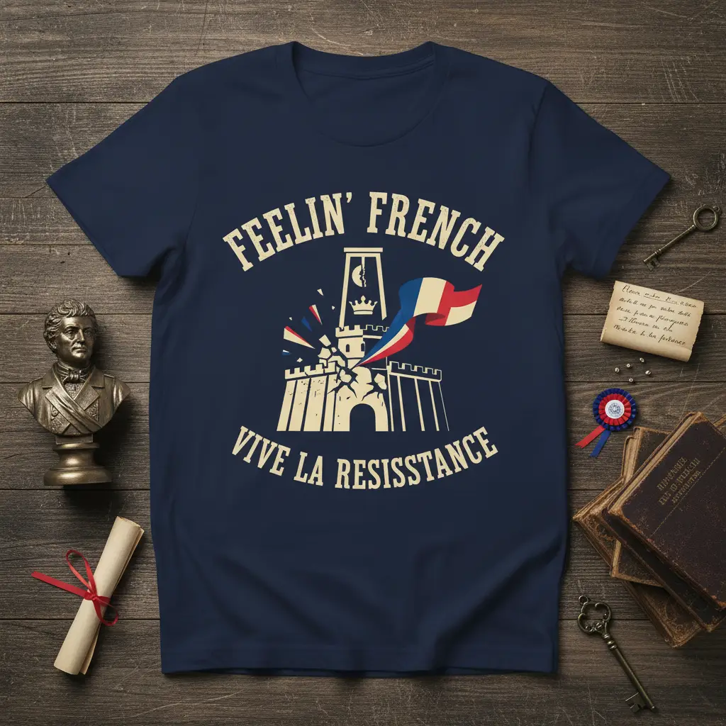 Feelin’ French Vive La Resistance embodies a spirit of national pride and historical significance, making this t-shirt a powerful statement for anyone who cherishes French heritage. The design captures the essence of French resilience and cultural identity with its evocative imagery and bold typography. It’s more than just apparel; it’s a wearable piece of history that resonates with passion and patriotism. This tee is perfect for expressing your connection to France, whether you’re celebrating a national holiday or simply want to showcase your admiration for French culture and its enduring spirit. Embrace the legacy with this unique and meaningful design.