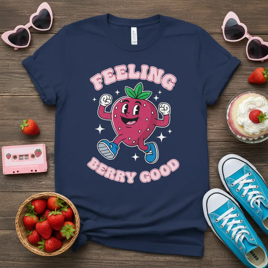 Pick from Black, Navy, Royal, Dark Heather, Red, and White to match your mood and wardrobe staples. Each colorway keeps the FEELING BERRY GOOD design clear and photo-ready for everyday wear.