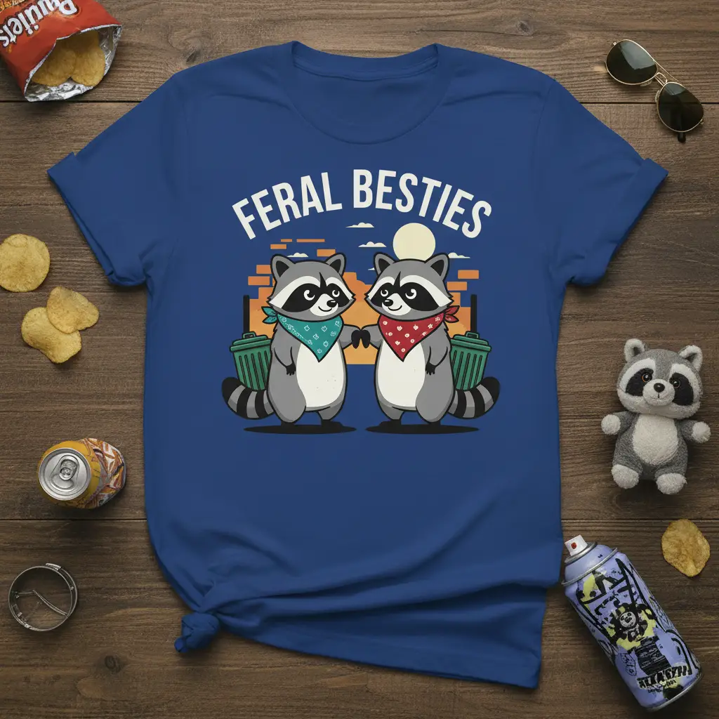 Feral Besties captures the essence of a friendship that’s wild, loyal, and undeniably fun. This t-shirt is designed for those who share an unbreakable bond, reminiscent of the most mischievous yet endearing creatures. It’s a celebration of companionship that thrives on shared adventures and a touch of playful chaos. Perfect for gifting or treating yourself, this tee embodies the spirit of true camaraderie. Get ready to embrace your inner trash panda with pride and style.