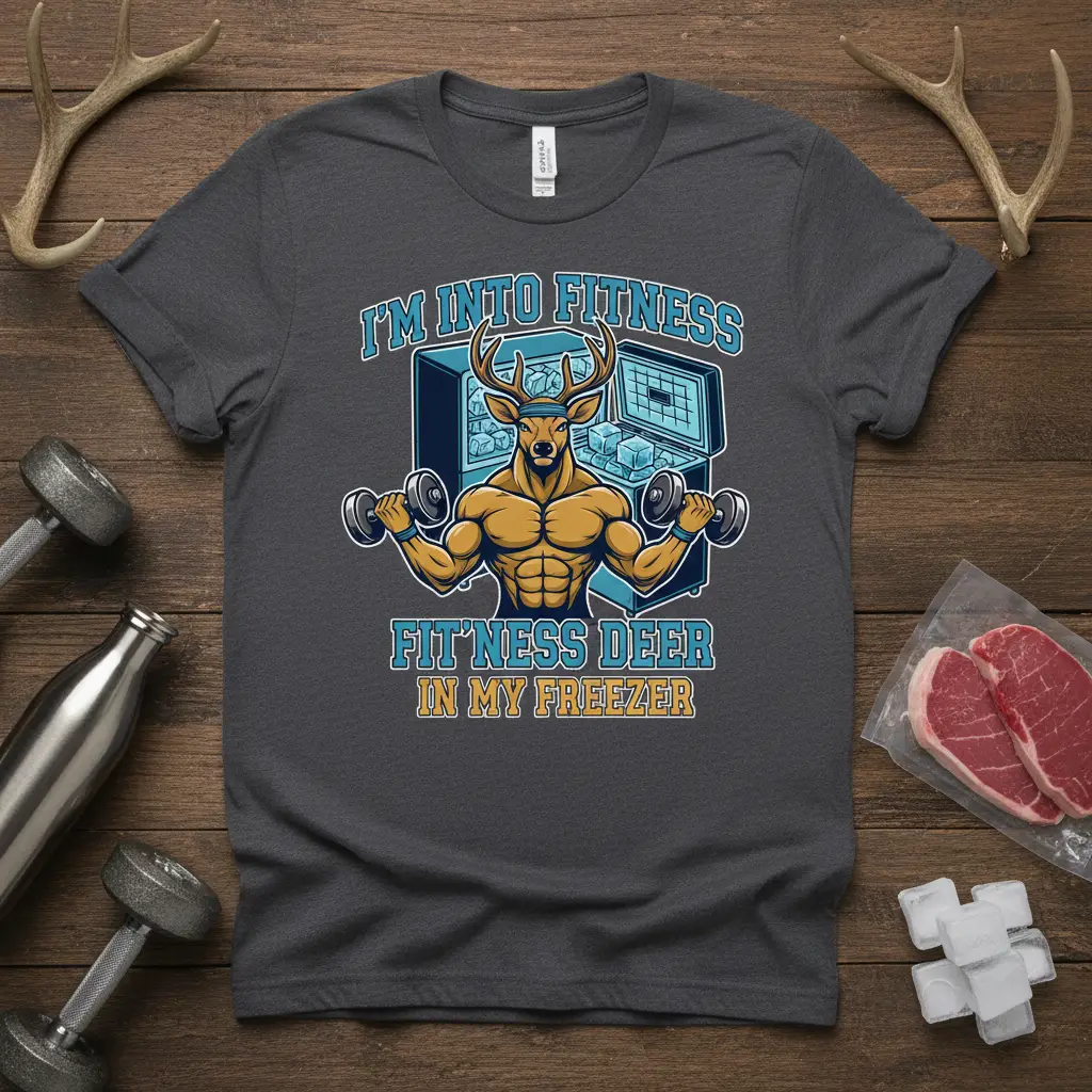 Looking for a unique gift that’s guaranteed to bring a smile? This “I’m Into Fitness Fit’ness Deer in My Freezer” t-shirt is the answer. It’s perfect for hunters who spend their weekends in the wilderness, fitness enthusiasts who live at the gym, or anyone who appreciates a clever and humorous design. This shirt speaks to a lifestyle of hard work, dedication, and a good dose of fun.