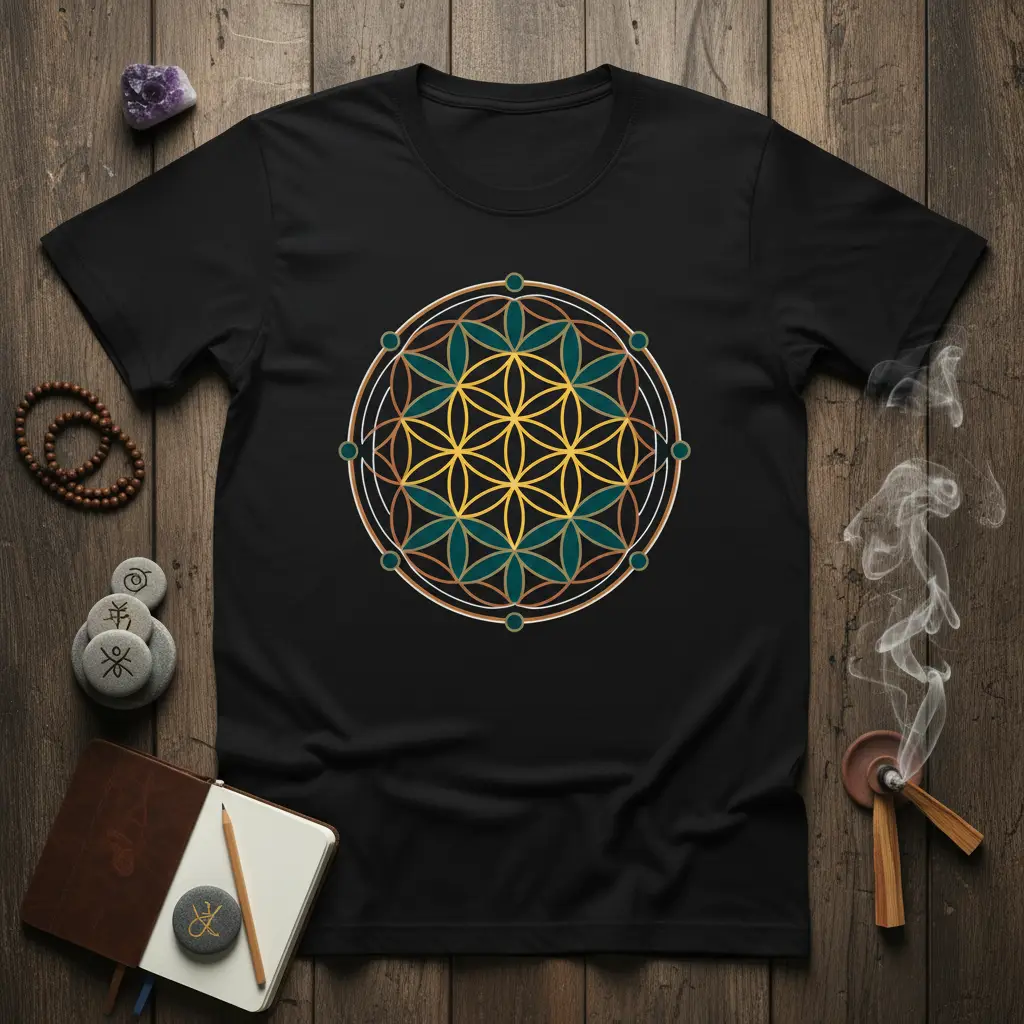 Wearing this t-shirt is an invitation to embrace your inner world and express your connection to the universe. The Flower of Life symbol is a powerful reminder of the underlying order and beauty that exists in all things. It’s a way to carry that sense of peace and interconnectedness with you throughout your day, influencing your mood and your interactions with the world. Let this design be a beacon of your spiritual awareness.