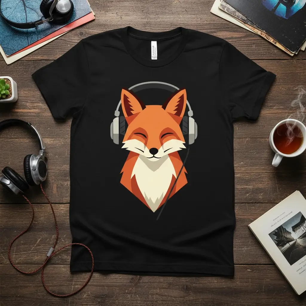 The appeal of this design lies in its ability to evoke a sense of peace and enjoyment. It’s a visual representation of the pure bliss that music can bring, embodied by the serene expression on the fox’s face. This t-shirt is designed to bring a smile to your face and spread a little bit of joy to those around you, making it an excellent choice for anyone who appreciates thoughtful and whimsical artwork.