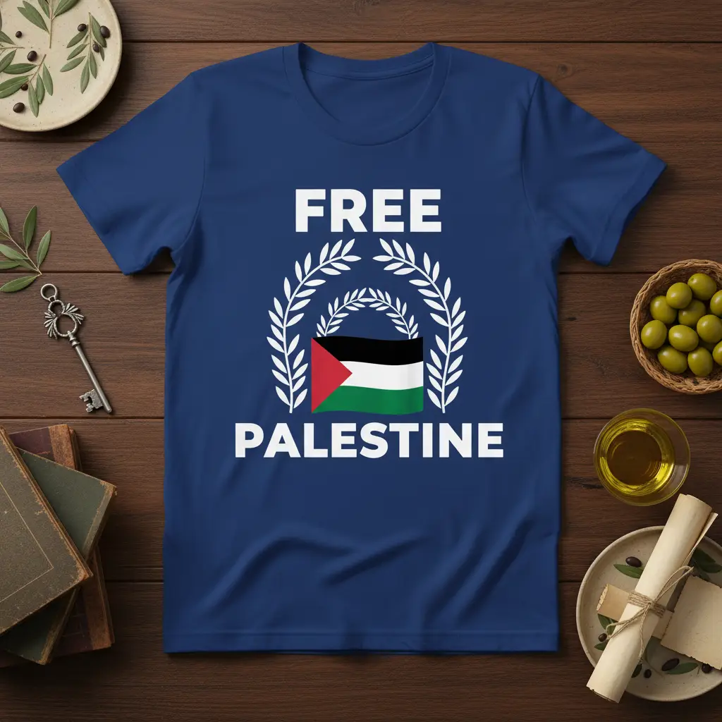 Free Palestine T-Shirt is a powerful statement piece designed for those who wish to express solidarity and support. This shirt features bold white lettering and the iconic Palestinian flag, enclosed within a symbolic laurel wreath. It serves as a visual representation of unity and a call for freedom, making it more than just apparel but a symbol of hope and advocacy. Crafted for comfort and durability, this tee allows you to wear your message with pride and conviction wherever you go.