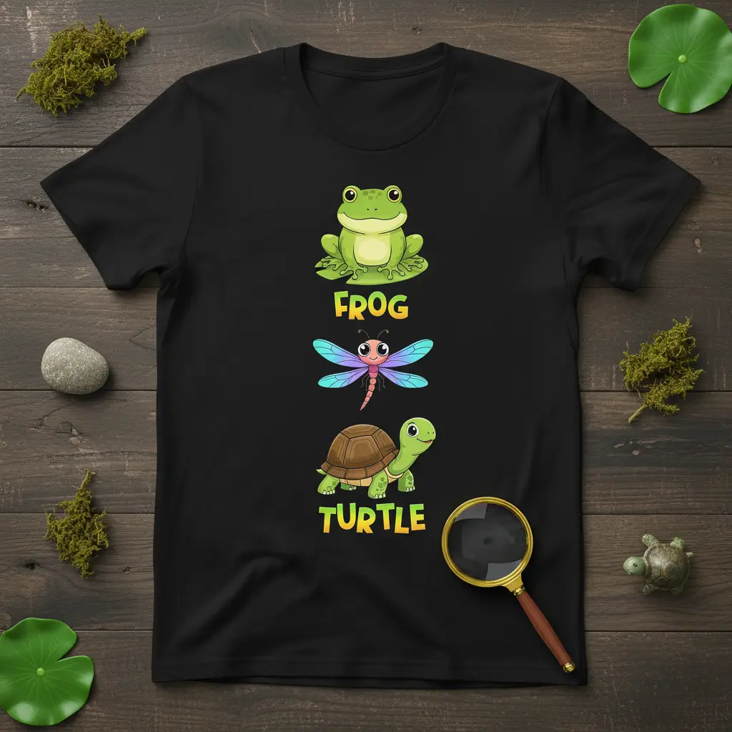 Crafted from premium, soft cotton, this t-shirt offers exceptional comfort and durability. It’s designed for everyday wear, ensuring you stay comfortable whether you’re out adventuring or lounging around. The high-quality print is made to last, maintaining its vibrancy wash after wash, so you can enjoy your favorite design for years to come. This Frog Turtle Dragonfly design is not just stylish but also built for lasting wear.