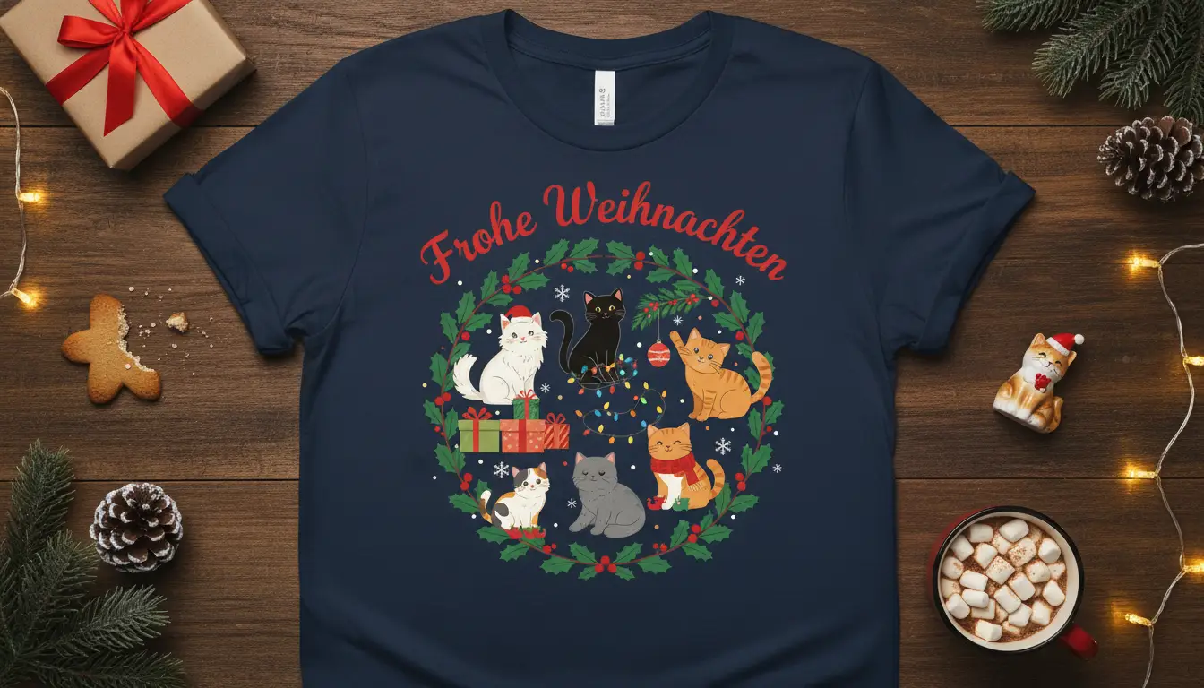 Frohe Weihnachten Cat Christmas T-Shirt: Your Festive Feline Companion