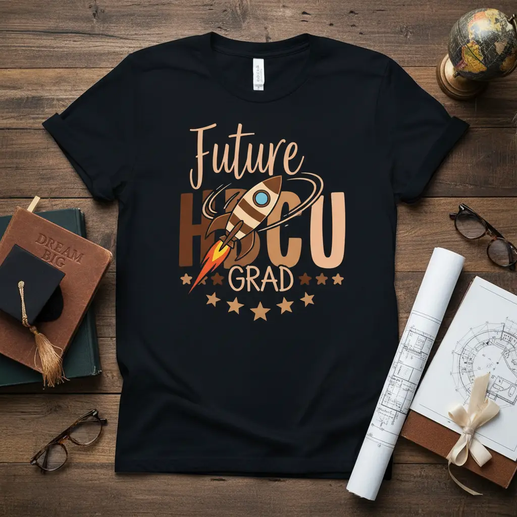 Future HBCU Grad, this t-shirt is designed to capture the excitement and ambition of students embarking on their academic journey. Featuring a bold rocket graphic that symbolizes launch and ascent, it’s a powerful statement of pride and aspiration. This tee is perfect for showcasing your connection to Historically Black Colleges and Universities and celebrating the path ahead. It makes an exceptional gift for aspiring students, current scholars, and anyone proud of the HBCU experience. Get ready to inspire and be inspired with this unique design.
