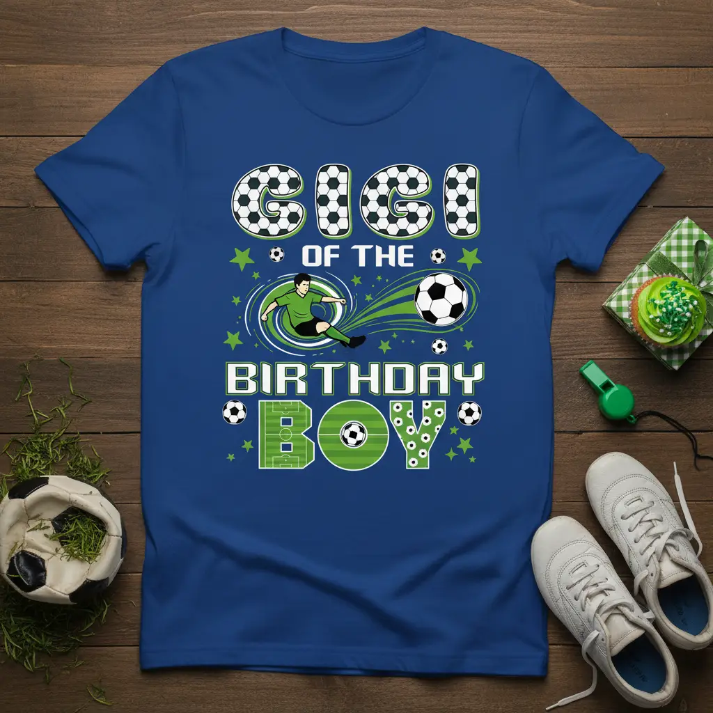 Gigi Of The Birthday Boy is more than just a t-shirt; it’s a declaration of sporty celebration for the special young man in your life. This vibrant garment is designed to capture the excitement of game day and the joy of a birthday party all in one. Perfect for the little soccer star who loves to kick, dribble, and score, this tee ensures he stands out on his big day. Its eye-catching design and comfortable fit make it an ideal choice for any birthday event, from casual backyard gatherings to more formal celebrations. Make his birthday unforgettable with a gift that celebrates his passion and his special milestone.
