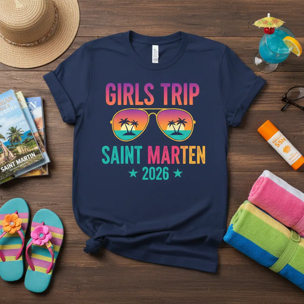Celebrate your unforgettable GIRLS TRIP SAINT MARTEN 2026 with this vibrant and stylish t-shirt. It’s the perfect way to commemorate your Caribbean adventure and create lasting memories. Made with comfortable, high-quality material, this tee is ideal for beach days and island hopping.