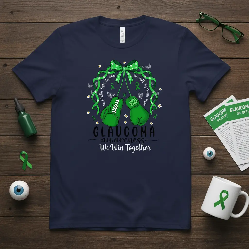 Glaucoma Awareness We Win Together, this impactful t-shirt is designed to unite and empower individuals and communities dedicated to fighting glaucoma. It serves as a powerful visual statement of solidarity, encouraging conversations and raising critical awareness about this prevalent eye condition. Wearing this shirt is a direct way to show your support for patients, caregivers, and researchers working tirelessly towards a future free from vision loss. Join the movement and let your apparel speak volumes about your commitment to this important cause.