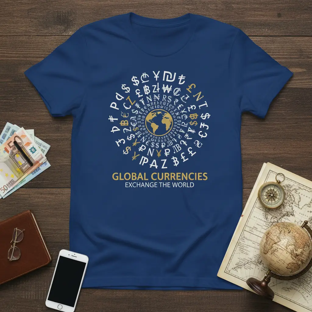 Don’t miss out on the opportunity to own this distinctive piece of financial apparel. The GLOBAL CURRENCIES EXCHANGE THE WORLD t-shirt is a fantastic way to wear your passion and connect with the global financial community. Its unique design and comfortable fit make it an indispensable item for anyone interested in economics, trading, or international markets. Add this statement tee to your collection today and let your style speak volumes about your financial insights. Explore the world of currency exchange through fashion and make a powerful statement.